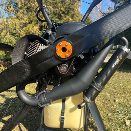 The paramotor is equipped with standard SCOUT features carbon cooling shroud, Safe Start, RPM sensor with hour meter.
